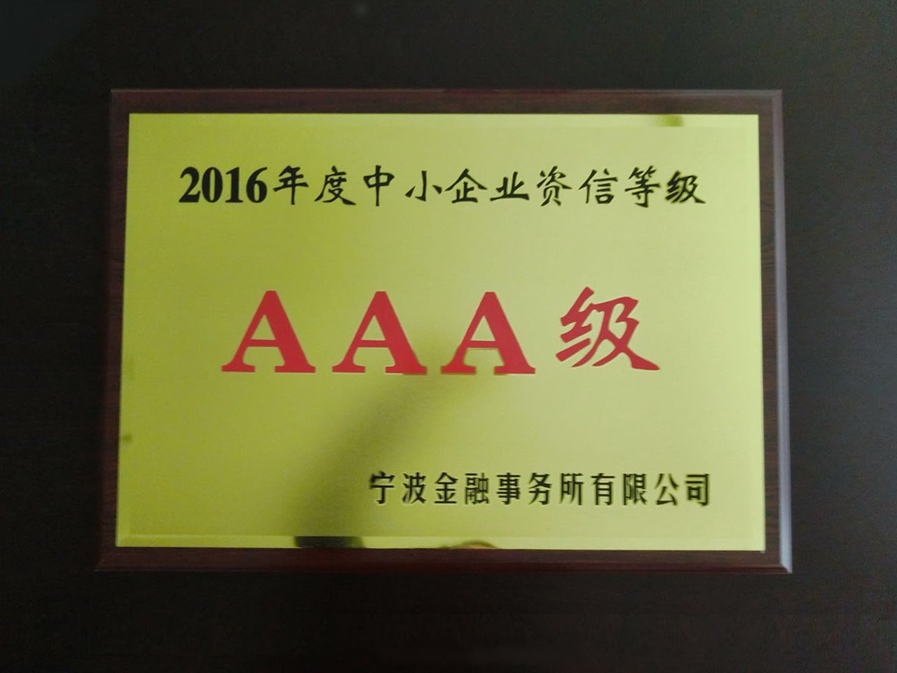 2016年度中小企業(yè)資信等級AAA級
