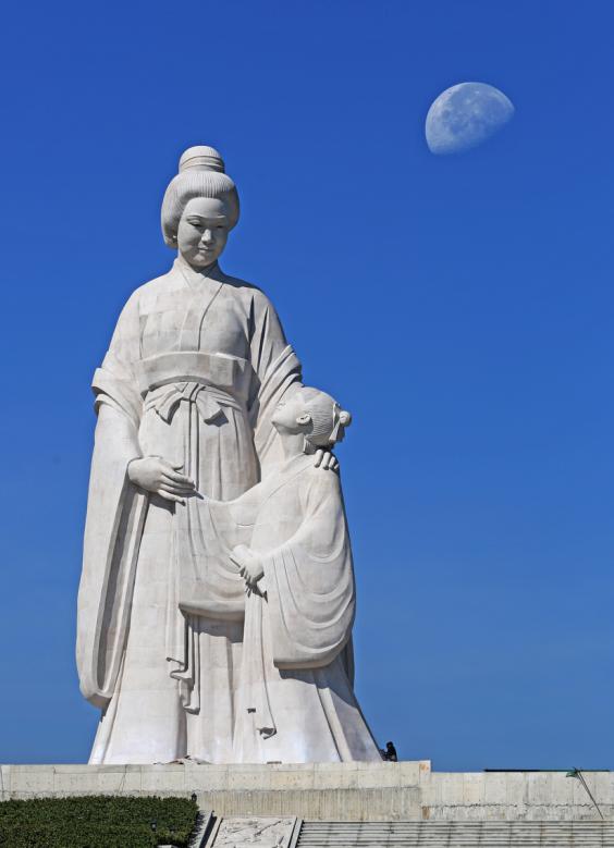 “母愛(ài)之門”高22.3米,寬86.7米,采用中華傳統(tǒng)的斗拱結(jié)構(gòu)建造,目前是江西省最大的景觀大門,也是全國(guó)最大的以斗拱結(jié)構(gòu)建造的大門;中華賢母園標(biāo)志性建筑是一對(duì)母子深情對(duì)視的主題雕塑,設(shè)計(jì)方案完成高29.8米,材料為淺黃色天然花崗巖石料,雕塑極具感染力和沖擊力。