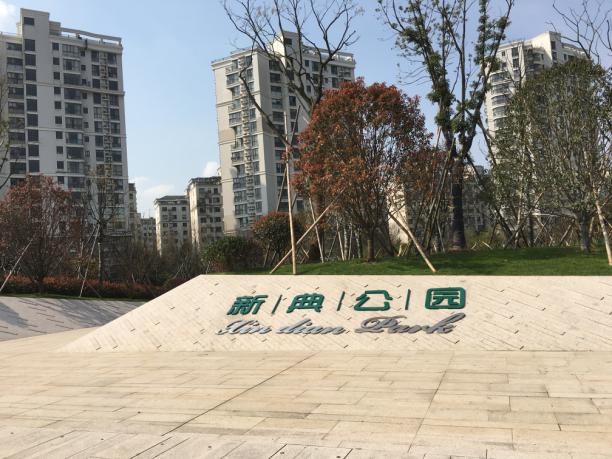 “蒹葭蒼蒼,白露為霜”,“西有新典,在水一方”。新典公園位四周清水環(huán)繞,全長(zhǎng)約1.2公里,占地約三公頃余,為帶狀濱水綠地。泗洲河?xùn)|西擁環(huán),廟前河南北穿越,北有高樓林立,下有地鐵橫穿,對(duì)岸阡陌縱橫,夕陽(yáng)斜照,蘆葦霞光。